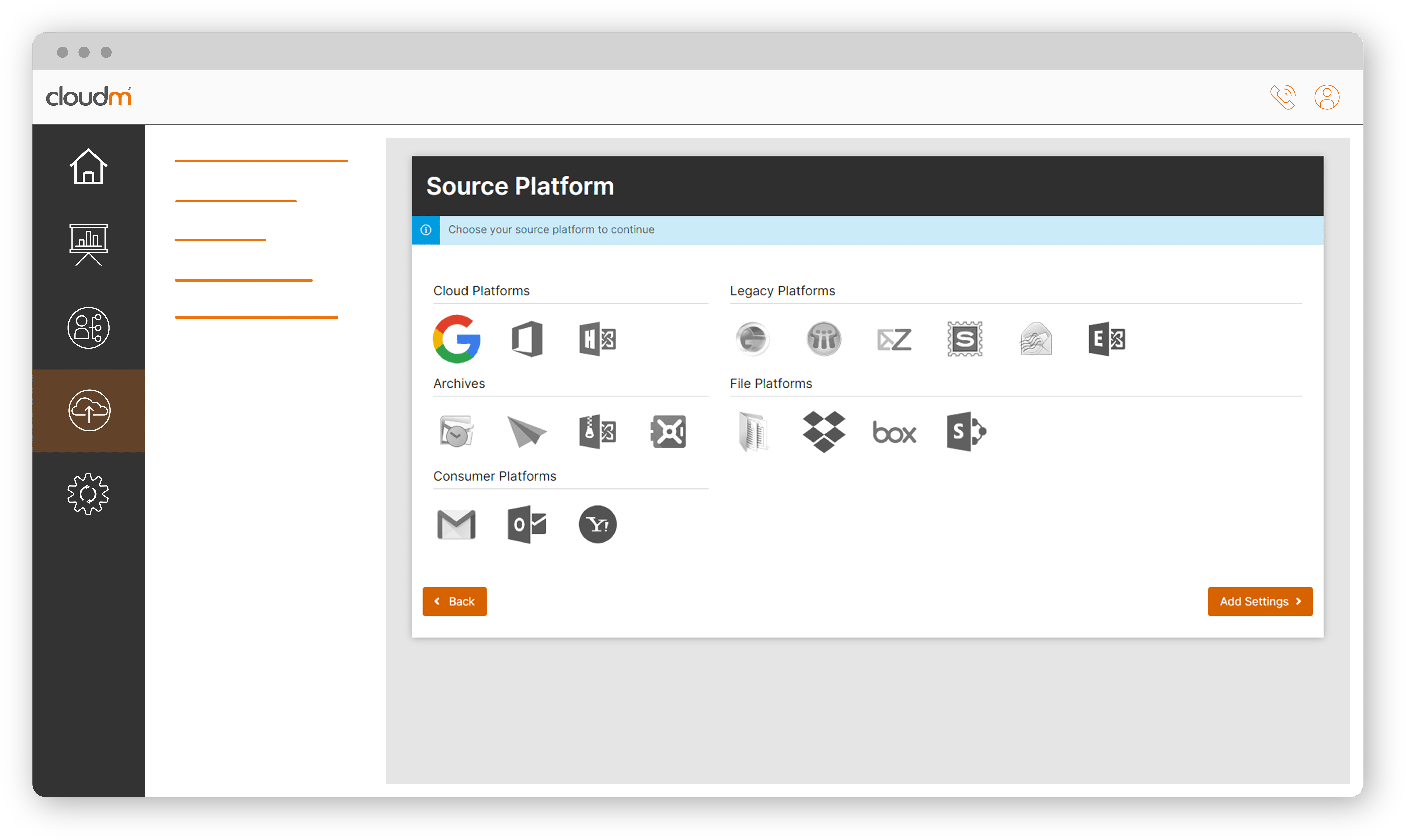 With a sleek and stylish design, CloudM’s intuitive and innovative user interface makes configuring, starting and monitoring your cloud migrations simple and speedy.