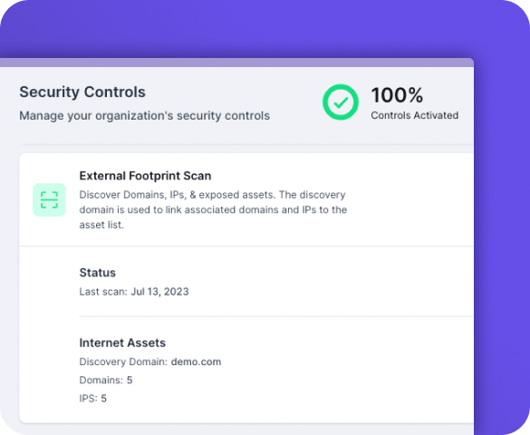 Gain actionable insights on external threats by scanning digital footprint and exposed vulnerabilities