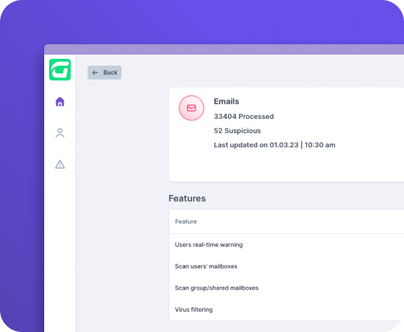 Stay ahead of potential email threats by leveraging a user- friendly API-based email security solution