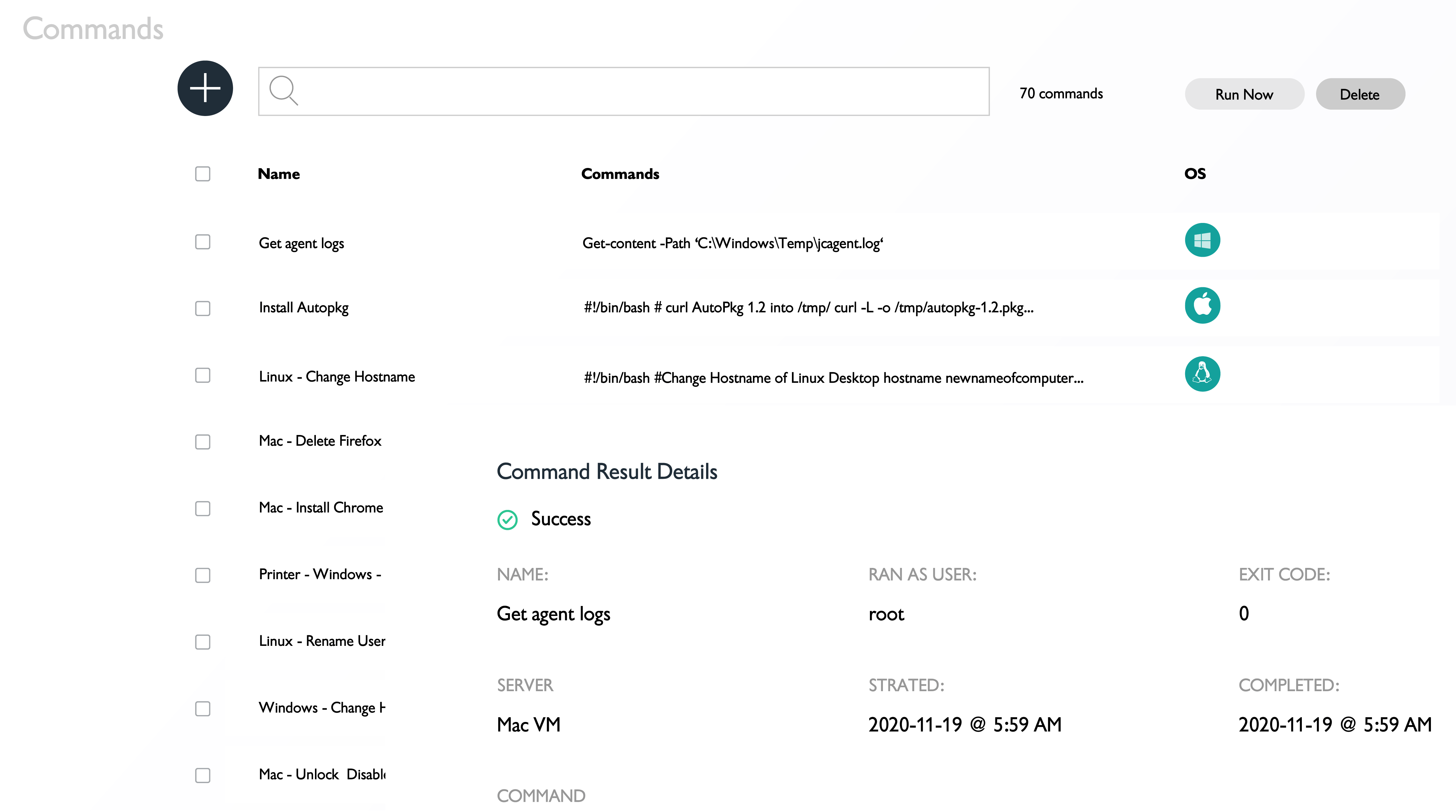 Create and execute scripts to manage your servers in the language of your choice and run commands on a scheduled or ad hoc basis.