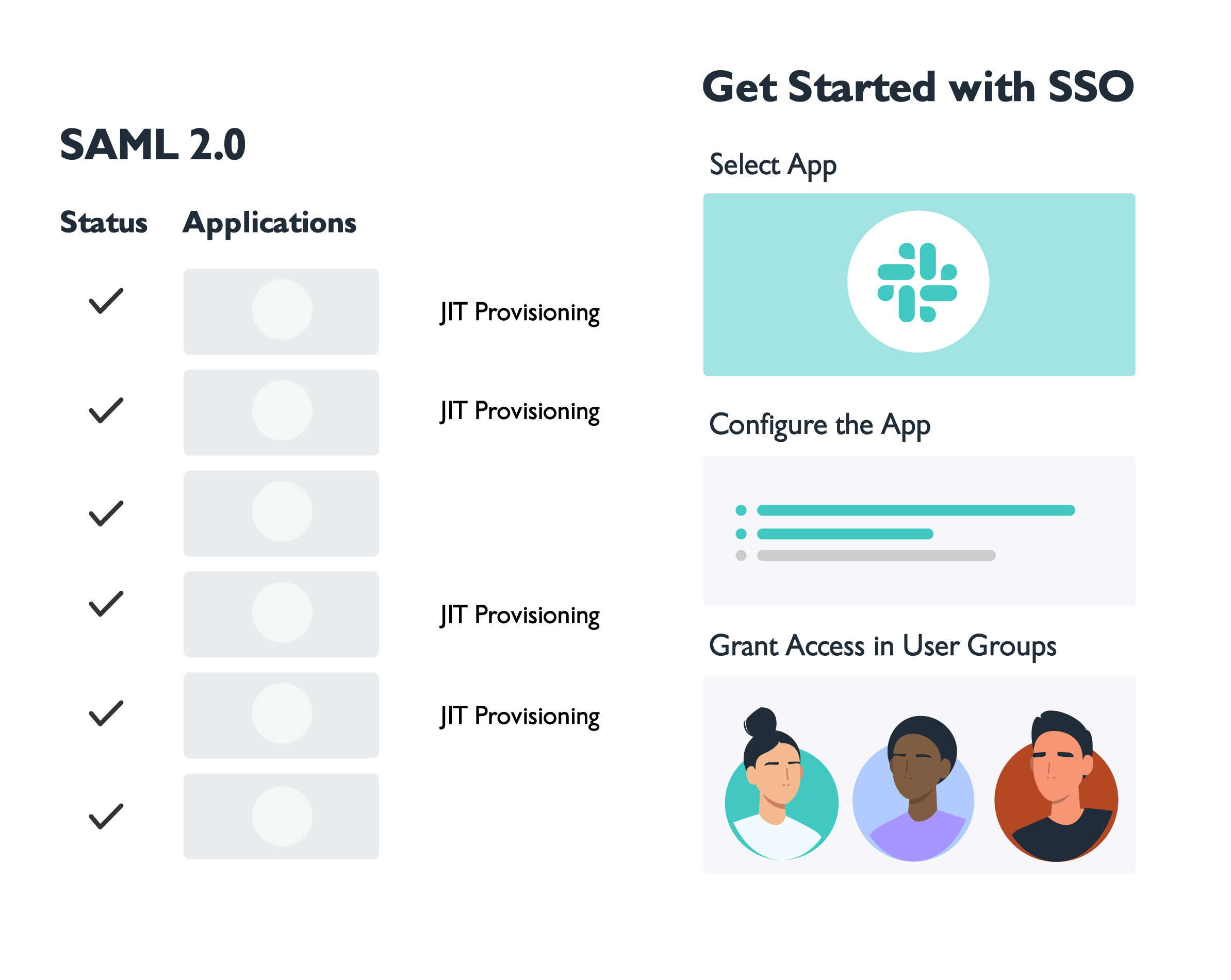 Provide access to apps via SAML 2.0, SCIM, and LDAP, including a catalog of hundreds of pre-configured connectors.