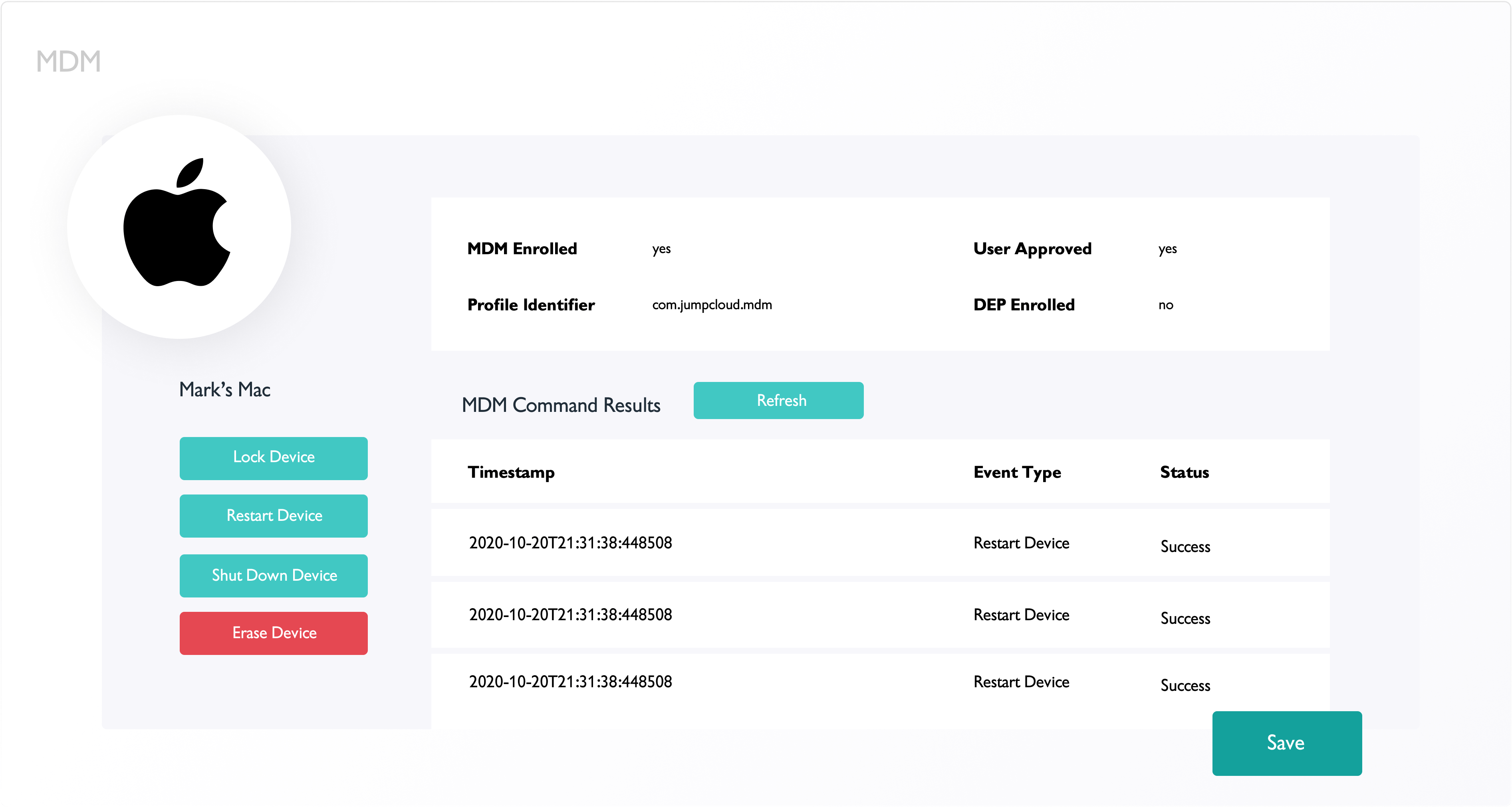 JumpCloud’s MDM device enrollment program enables zero-touch enrollment for Macs. Admins can send end users a work device that’s pre-loaded with their JumpCloud identity, so it’s ready for the end user and protected with admin-managed policies and commands right out of the box. JumpCloud’s Security Commands for Windows enable admins to apply four remote security commands to managed devices — restart, shut down, lock, or erase — to keep end user machines safe.
